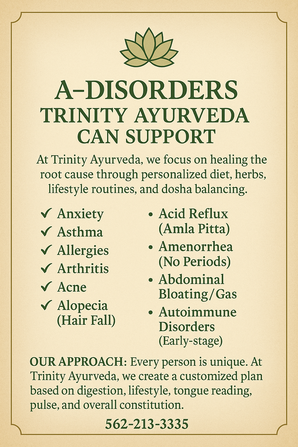 We have seen how pain and disease can affect a person, their family, and the community around them— which is why Trinity Ayurveda is here to help you understand and find an alternative way to goodness. Our services have reached many people finding ways to good holistic health in the Cerritos area. We aim to quickly identify and address the root cause of what troubles you. We have a great passion for helping people in the community regardless of their age or stages in life. We always want to leave one's condition better than we have found it. Don't hesitate to contact or visit us at Trinity Ayurveda today!